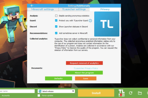 Features of TLauncher for Minecraft